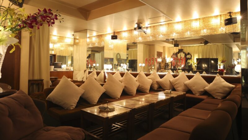 あかいくつ昭和44年開業の老舗店。当店より高知城へサーチライトを照らし続けています。